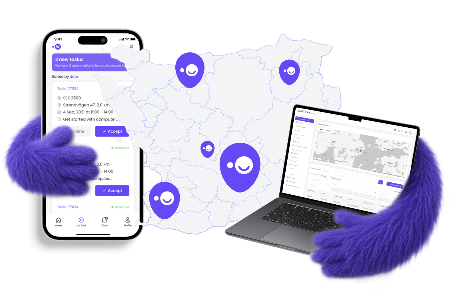 As a service entrepreneur, you know that success is based on the right conditions - unfortunately, just “working harder” is not enough. That's why we created BuddyPro, to give service companies in the RUT and ROT sectors the conditions to simplify their daily lives, reduce hassle and free up time. Automate everything from assignment requests and quotes, to scheduling and assignment management, as well as billing and reporting.